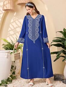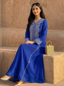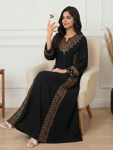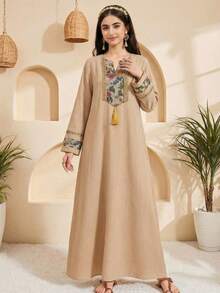 - نوع المنتج: عباءة خليجية مزخرفة بالخيوط للمراهقات.