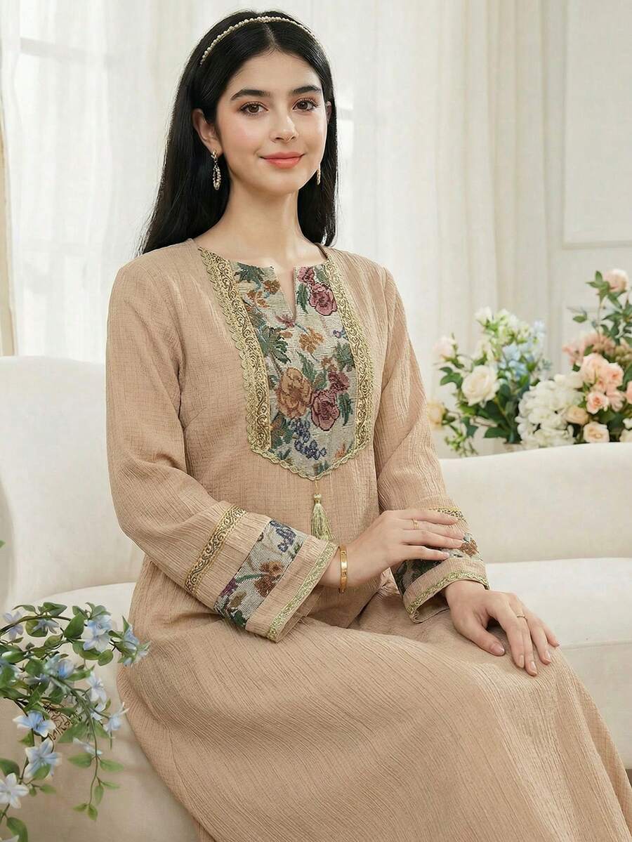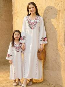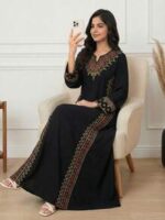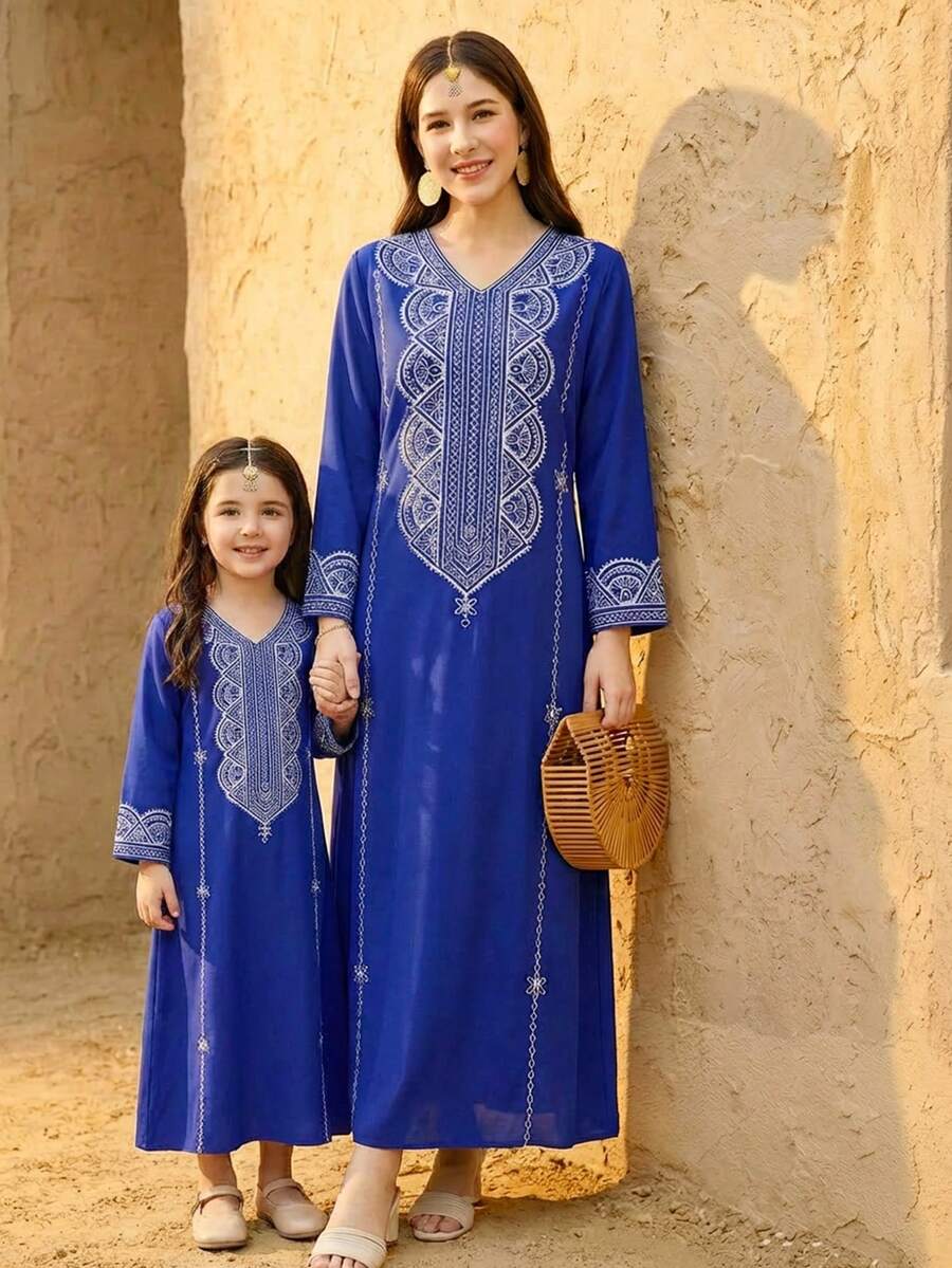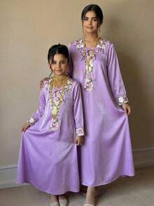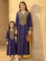 جلابيات رمضان للام والبنت مزينة بتطريزات دقيقة من الخيوط تمنح المراهقات إطلالة أنيقة ومميزة في رمضان وكل مناسبة خاصة، مع تصميم يجمع بين الراحة والفخامة.