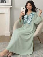 • تصميم جلابية رمضان للبنات طويل الأكمام يحافظ على الأناقة والراحة.