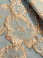 • النقشة والخامة: جاكار أو تطريز بنقشة ورود