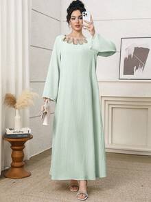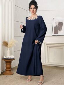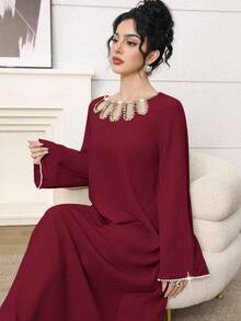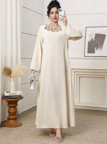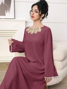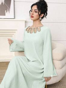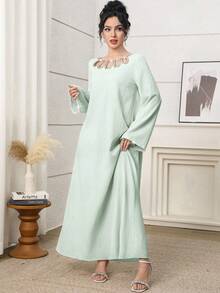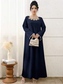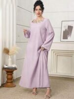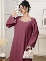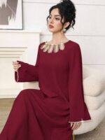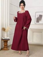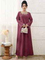 فستان طويل أنيق برقبة دائرية وأكمام طويلة