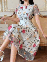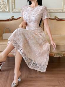 - نوع المنتج: فستان بأكمام قصيرة مزين بالدانتيل