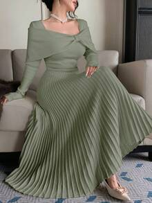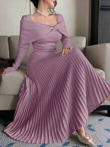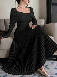 - قصة فستان سهرة بليسيه مريحة وأنيقة تناسب السهرات والحفلات