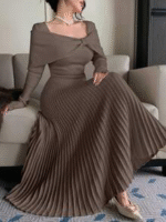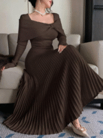 - التصميم: فستان بليسيه صوفي طويل أنيق