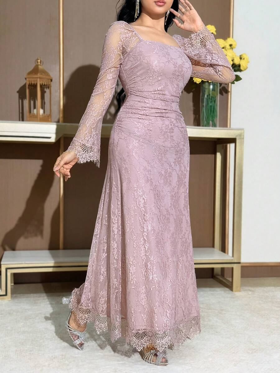 Modelyn فستان نسائي بأكمام واسعة ضيق مناسب اللون