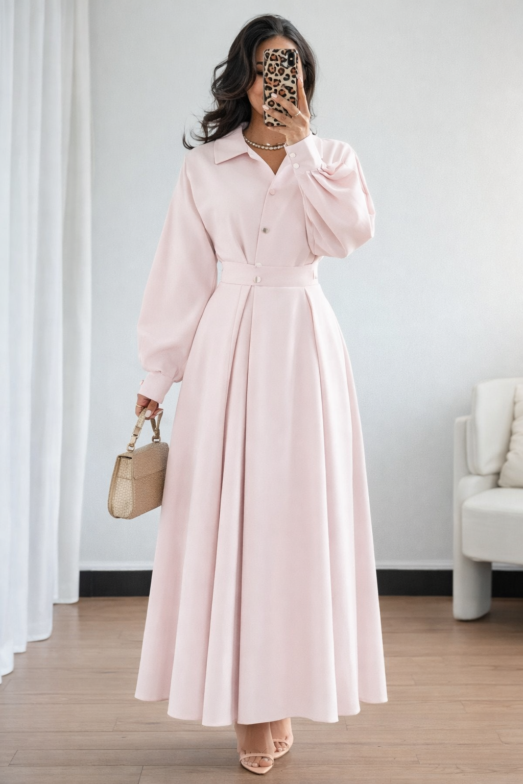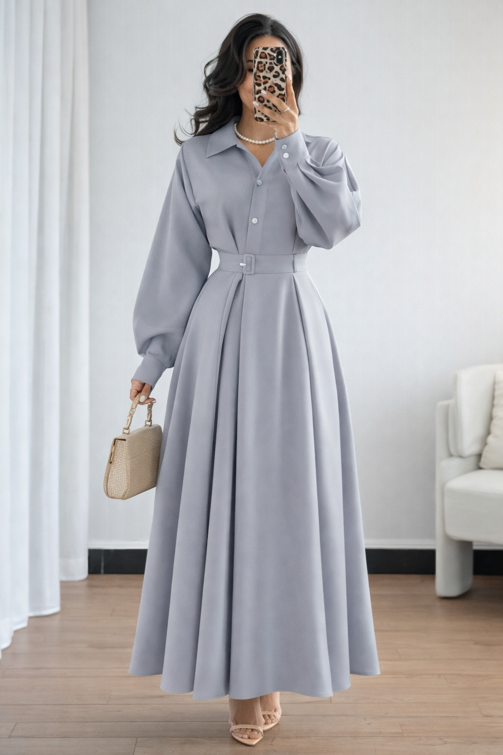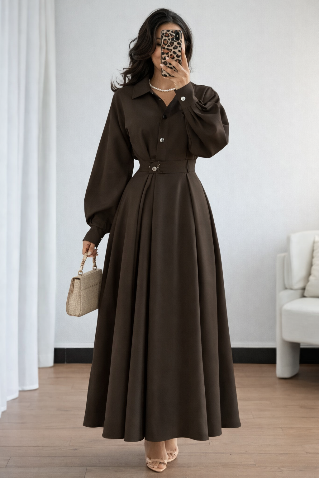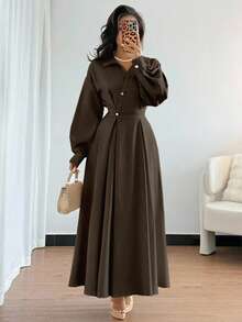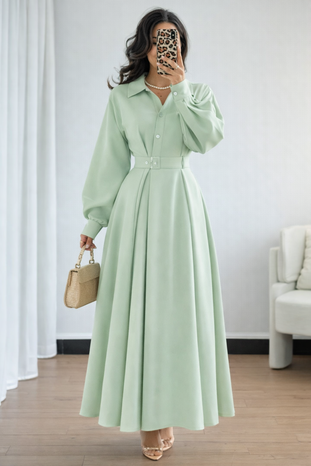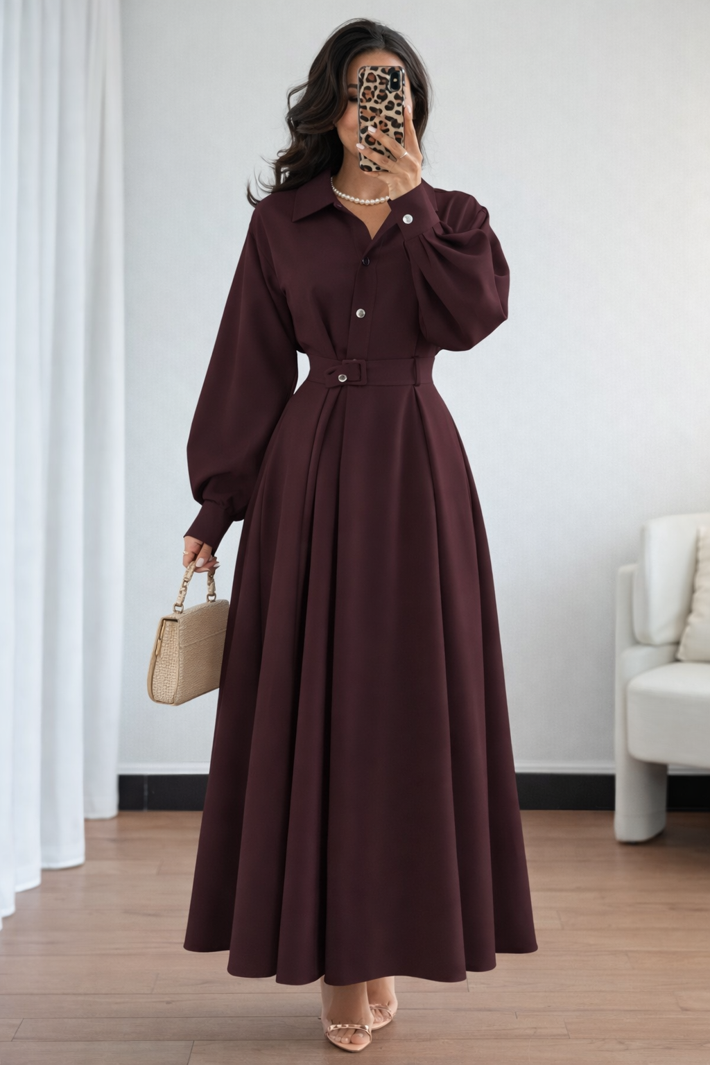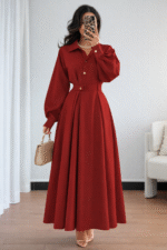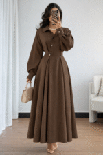 Rafferiza فستان نسائي بياقة منقلبة وأكتاف منسدلة وأكمام طويلة وخصر متسع، مناسب للخروجات والعطلات والأعياد والسفر